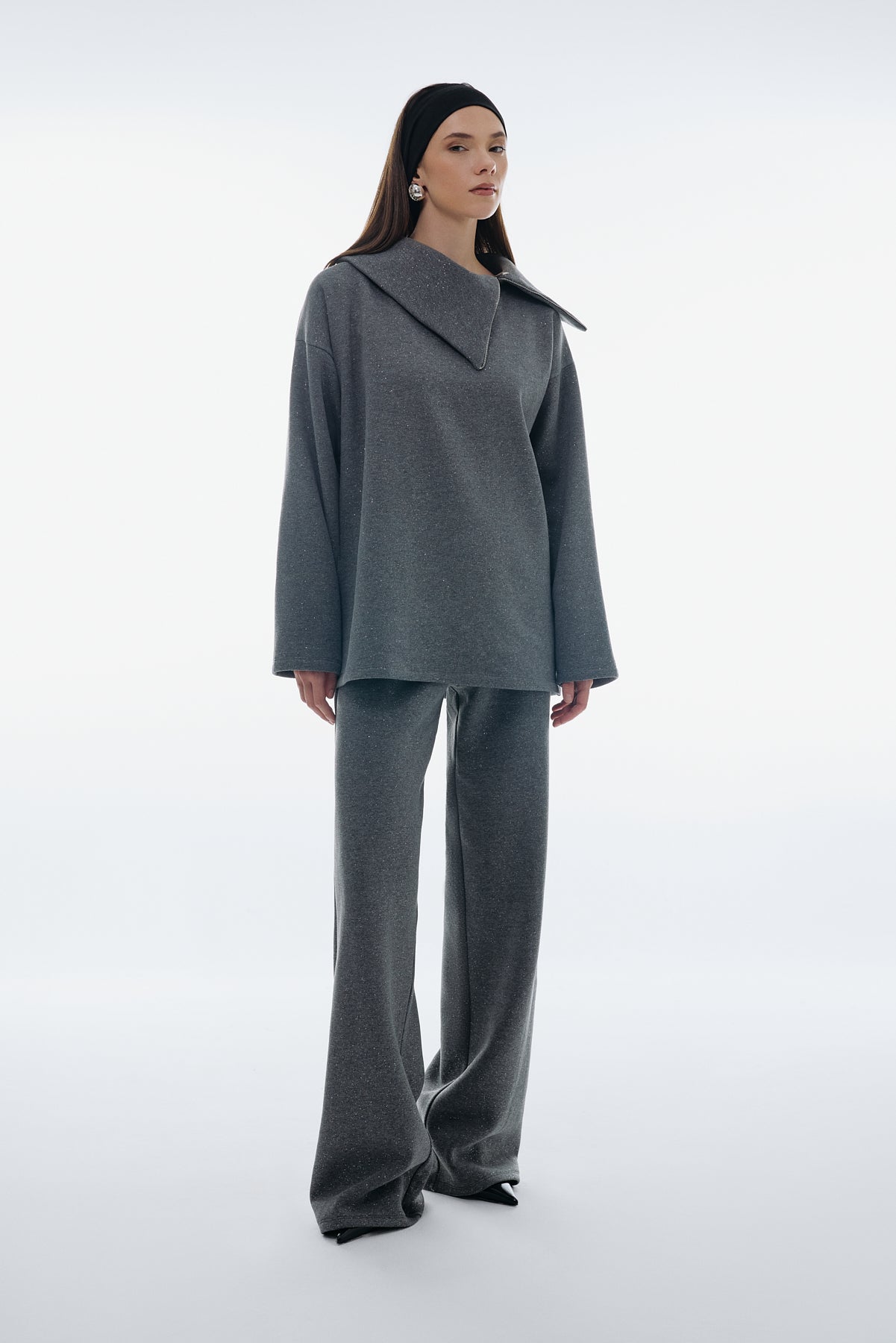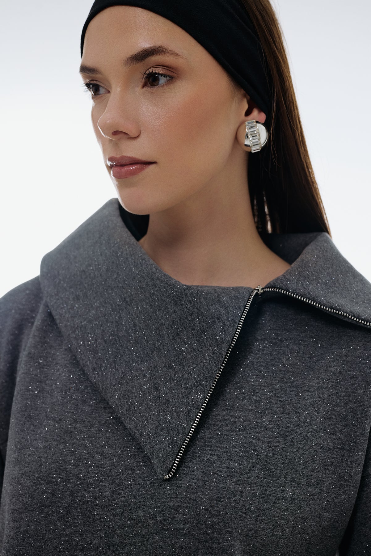 - Asimetrik fermuarlı geniş yaka